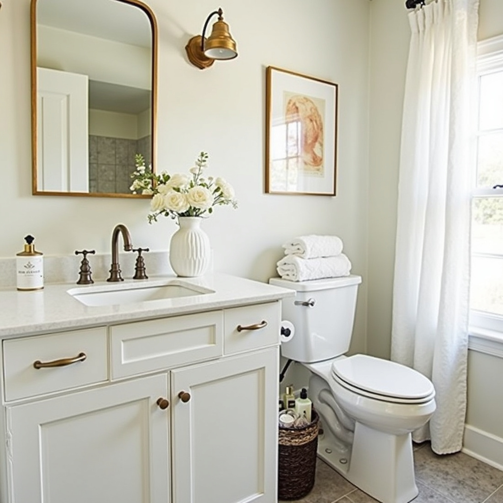 Touches of gold, brass, or chrome in fixtures and accessories introduce elegance and reflect light, helping the space shine.