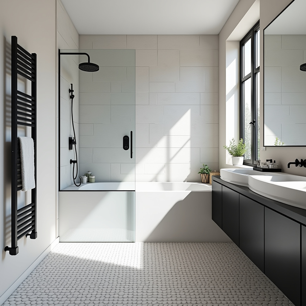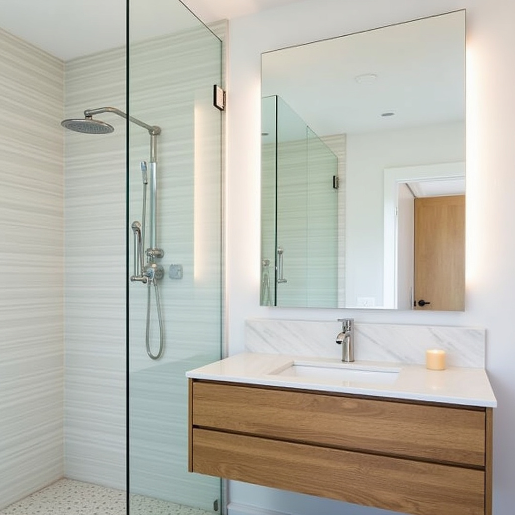 Larger tiles reduce grout lines, making the space feel less cluttered and more expansive. Go for a cohesive palette for a clean look.